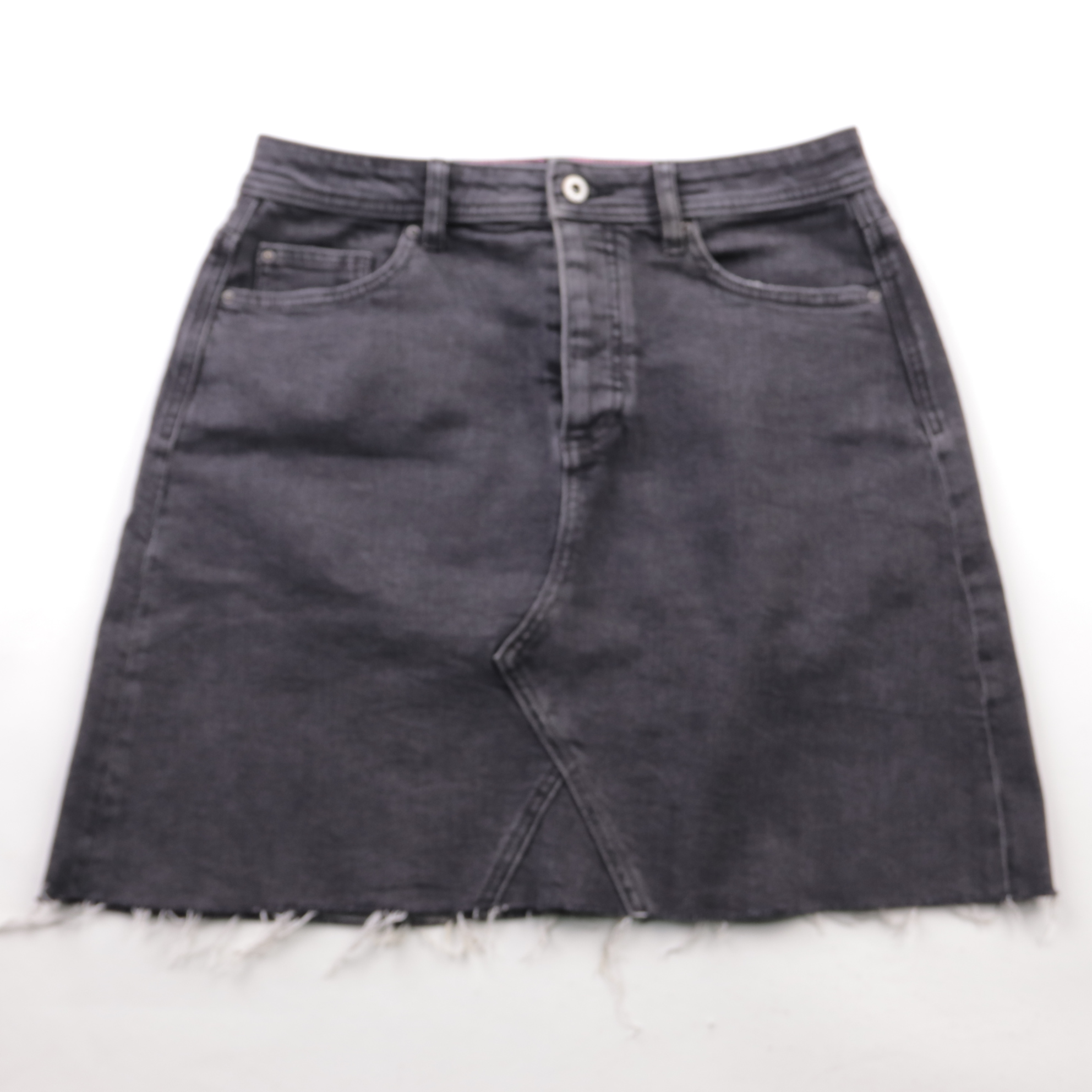 Джинсовая юбка edc из серо-чёрного денима с необработанным краем и классической посадкой на талии. Подойдёт для повседневных образов с футболками, свитшотами и кедами в тёплое время или с колготками в межсезонье. Плотный хлопок с эластаном хорошо держи...