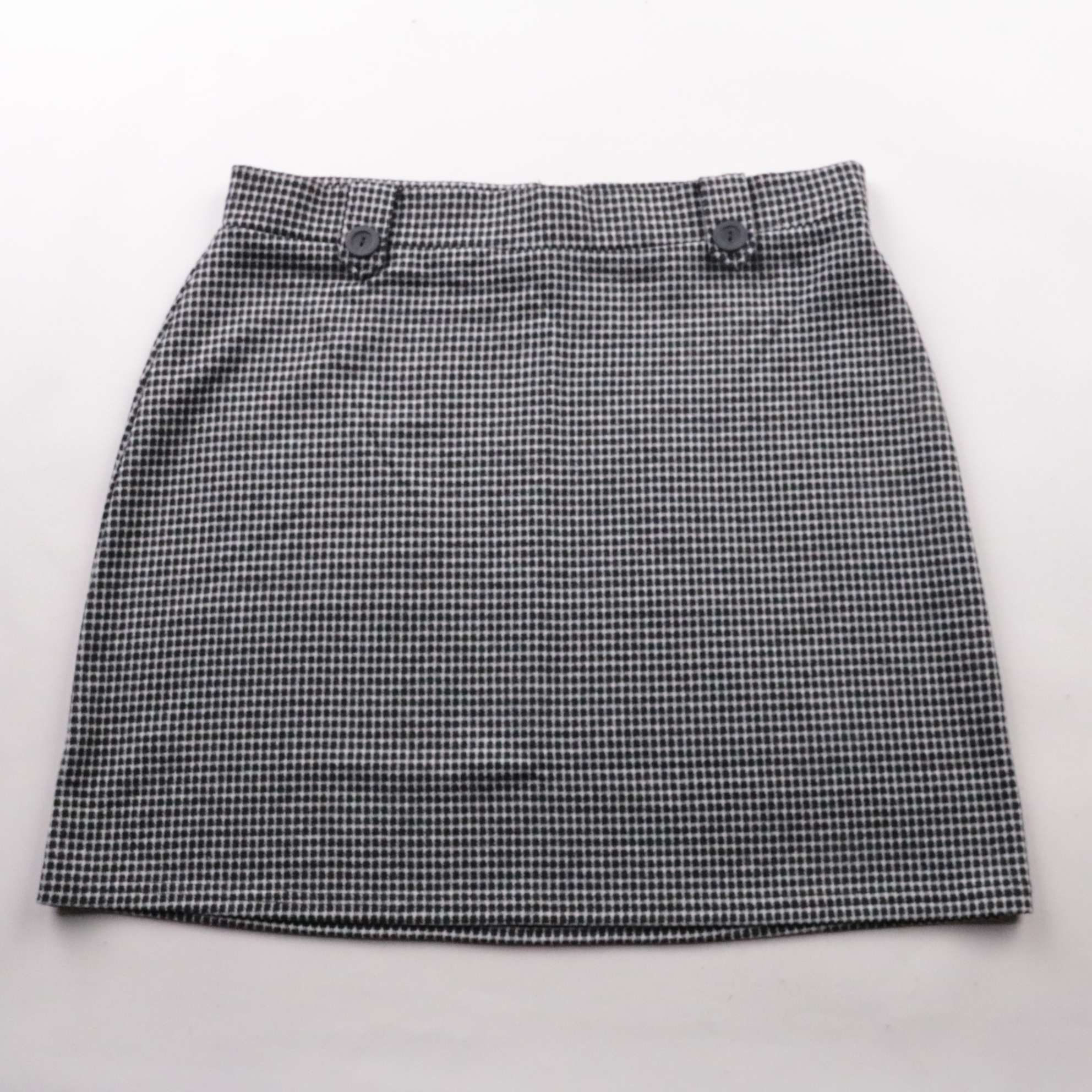 Юбка Papaya Smart в чёрно-белую мелкую клетку, прямого мини-кроя с декоративными пуговицами у пояса. Подойдёт для офиса и повседневных образов с рубашкой, водолазкой или жакетом. Плотная ткань держит форму и не просвечивает.