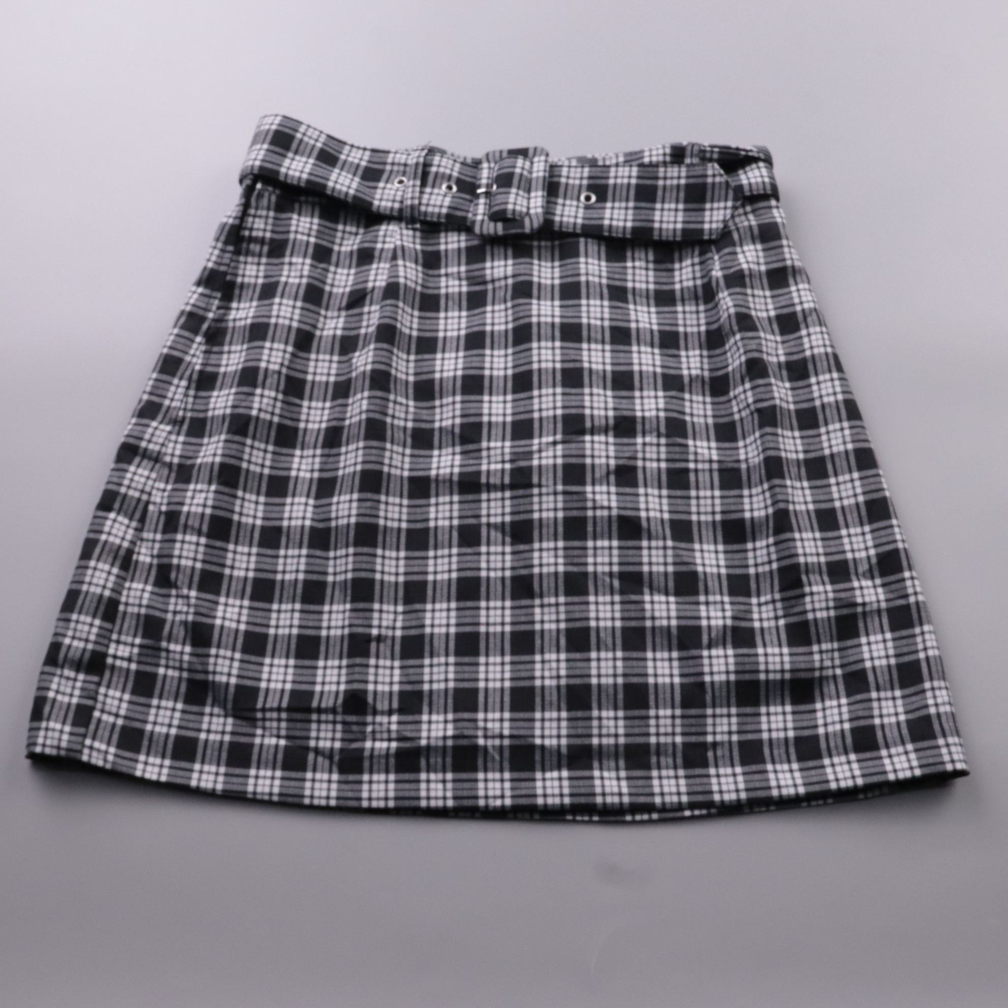 Юбка H&M в чёрно-белую клетку, А-силуэт, с поясом. Подойдёт для повседневных и офисных образов с водолазкой или рубашкой. За счёт подкладки комфортно сидит и не просвечивает.