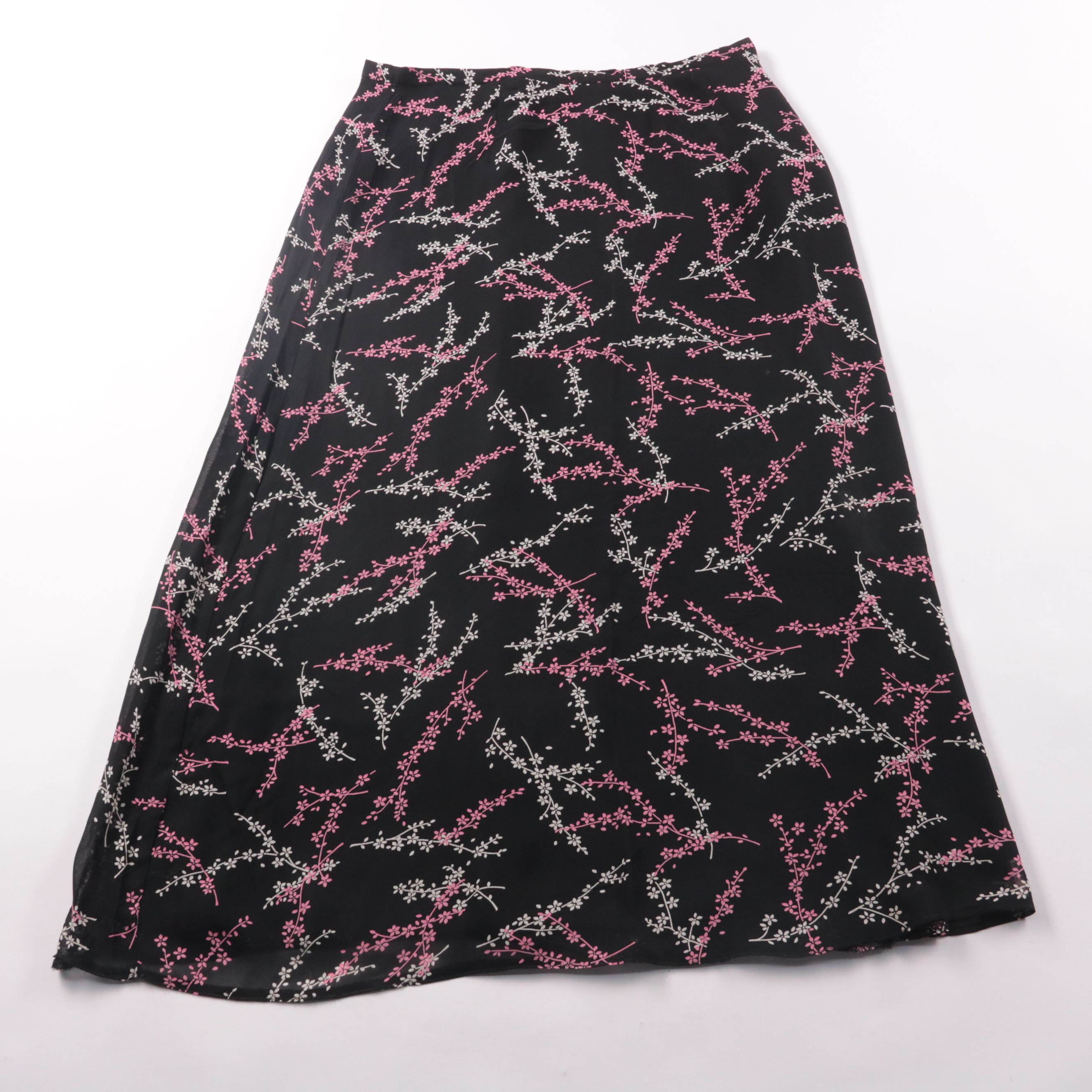 Юбка Debenhams с чёрной основой и цветочным принтом в розово-белых оттенках, длина миди/макси. Подойдёт для повседневных образов в тёплую погоду и на выход с базовым верхом. Лёгкая вискоза хорошо драпируется и комфортна в носке.